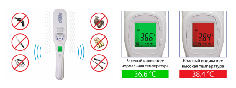 Ручной металлодетектор с датчиком для измерения температуры тела – новейшая разработка для обеспечения комплексной безопасности в условиях пандемии. Модель БЛОКПОСТ РД 2000 Б предназначена для локального обнаружения запрещенных к проносу предметов и для измерения температуры человека. Высокочувствительный термодатчик обеспечивает мгновенное измерение температуры тела с отображением результата измерения на экране с уровнями подсветки.